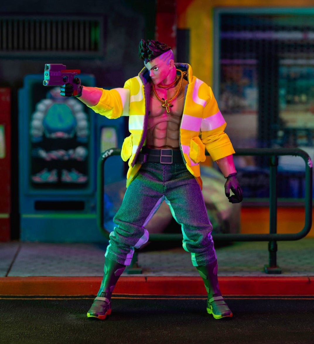 Step into the neon-lit chaos of Night City with the David Martinez 1:12 Scale Action Figure from Jada Toys. This meticulously crafted 1:12 scale action figure captures the raw energy and unstoppable drive of David Martinez, the iconic protagonist from the hit anime series Cyberpunk: Edgerunners.David is fully posable and includes soft goods jacket and pants, giving an extra level of realism and flexibility. Includes alternate head sculpt, interchangeable hands, David’s pistol and swappable arm cannon. You can recreate David's most intense action scenes and dynamic stances, embodying the spirit of a character who rose from the streets to become a Night City legend. Whether you’re posing him in battle-ready stances or recreating your favorite moments, David’s got the looks, the gear, and the attitude to dominate any shelf or display.