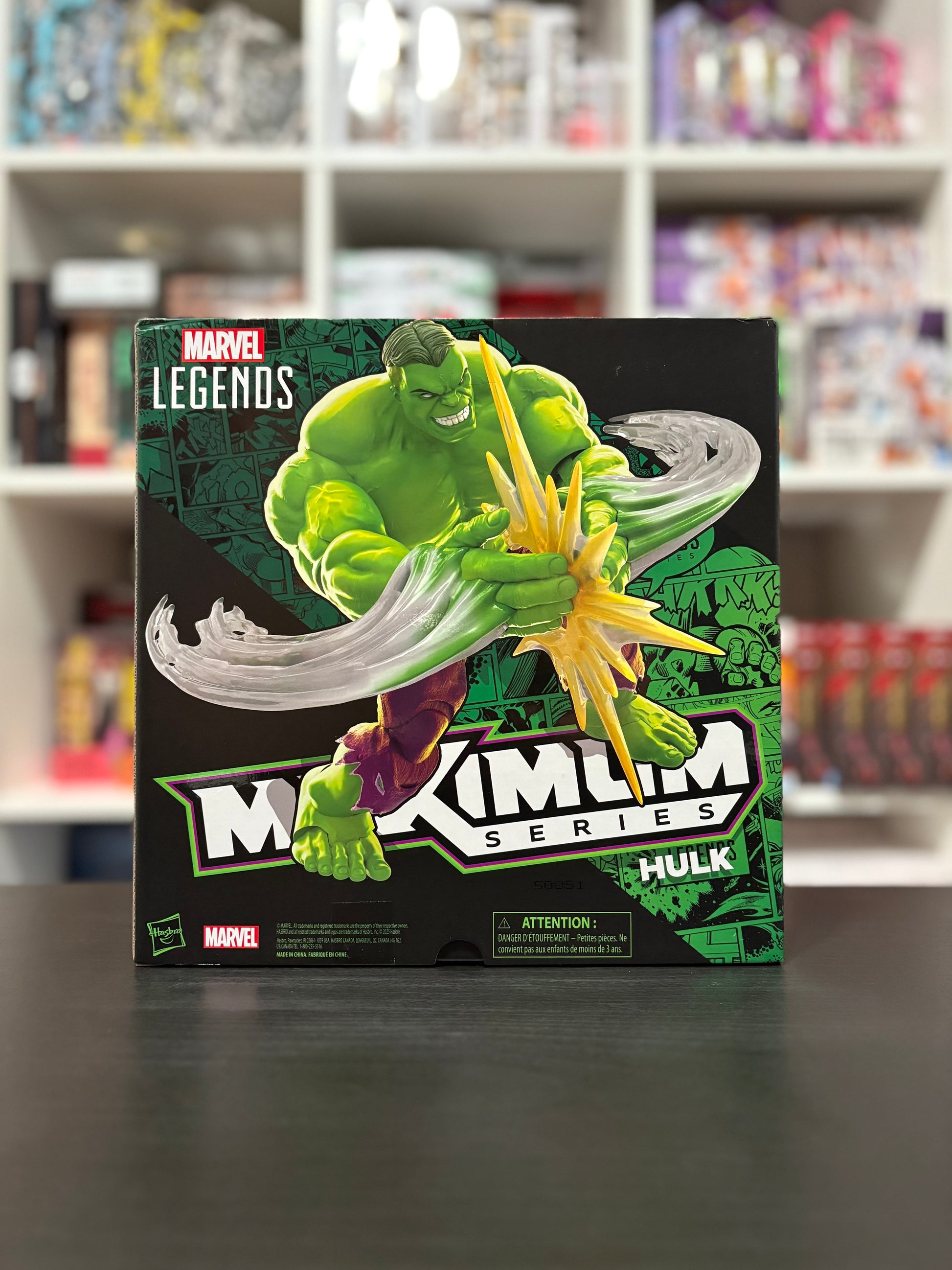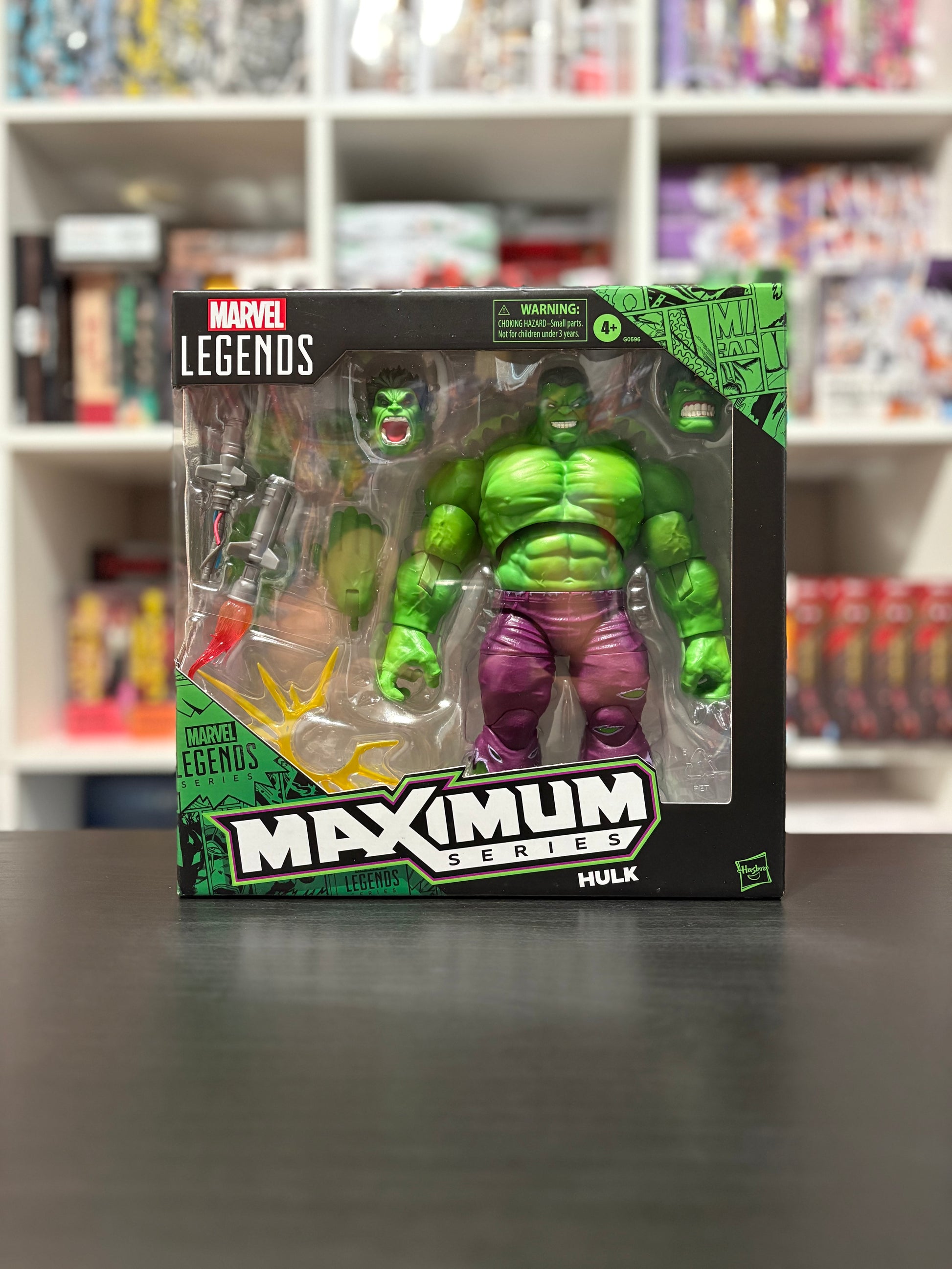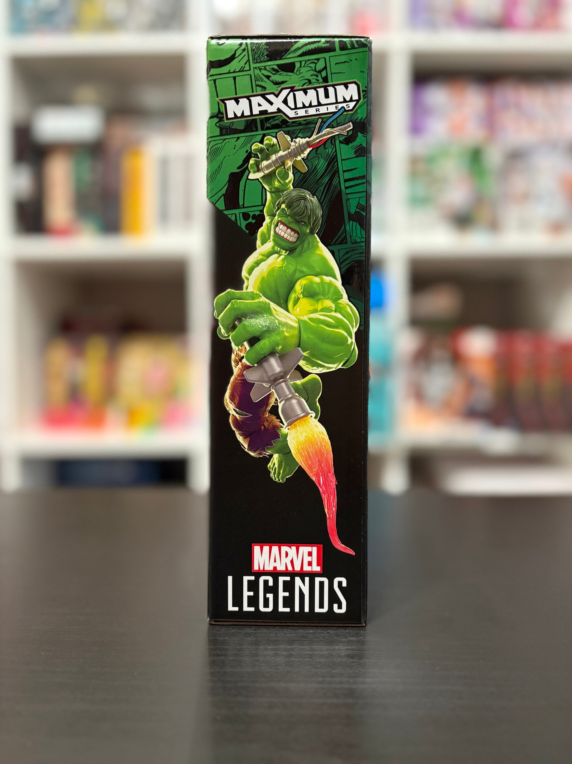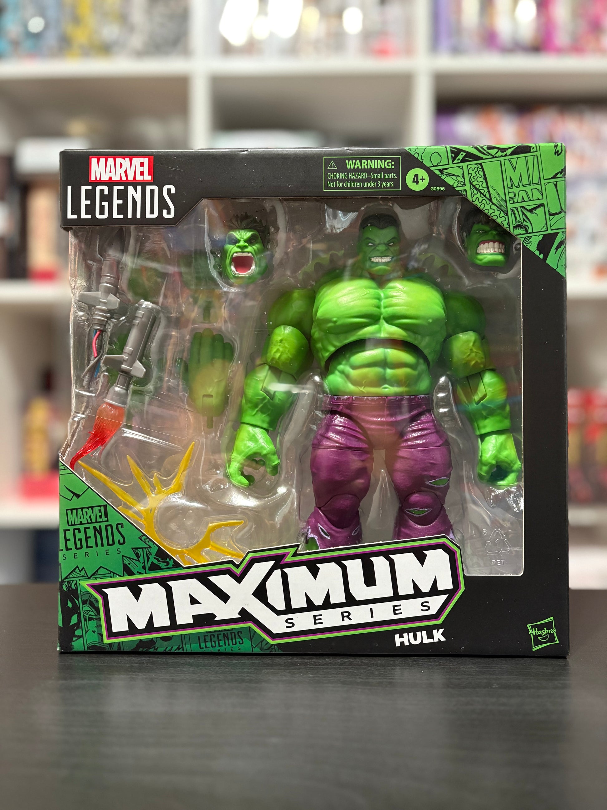 Bring the excitement and wonder of the Marvel Universe to your collection with the Hasbro Marvel Legends Maximum Series Hulk figure! This collectible figure is detailed to look like the character from Marvel's Hulk comics. Massive oversized 8 1/2-inch tall Marvel figures are fully articulated with poseable head, arms, and legs. Maximum Series action figure set is bursting with 11 accessories, including: alternate Hulk heads; clap energy effect; 4 alternate hands; 2 swoosh effects; and 3 rocket parts. Hasbro Marvel action figures' 6 inch scale make them great for posing and displaying in fans' collections. Reimagine Hulk comics-inspired scenes on your shelf with Marvel Legends action figures. Includes figure and 11 accessories.