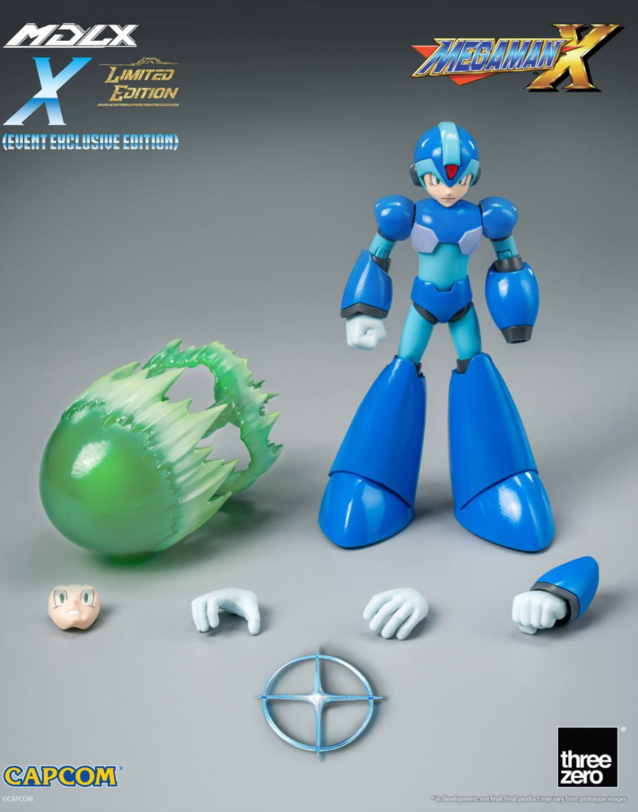 From the Mega Man X video game series (also known asRockman X), threezero proudly presents the MDLX X collectible figure! Standing nearly 4 3/4-inches tall, the Mega Man X MDLX Action Figure features approximately 34 points of articulation. The body frame structure combines metal and engineering plastic parts, which enhances joint stiffness and provides a satisfying, sturdy feel when posing and articulating the figure. Included with this Exclusive version is 1x Victory Effect accessory that can be attached to X's helmet.