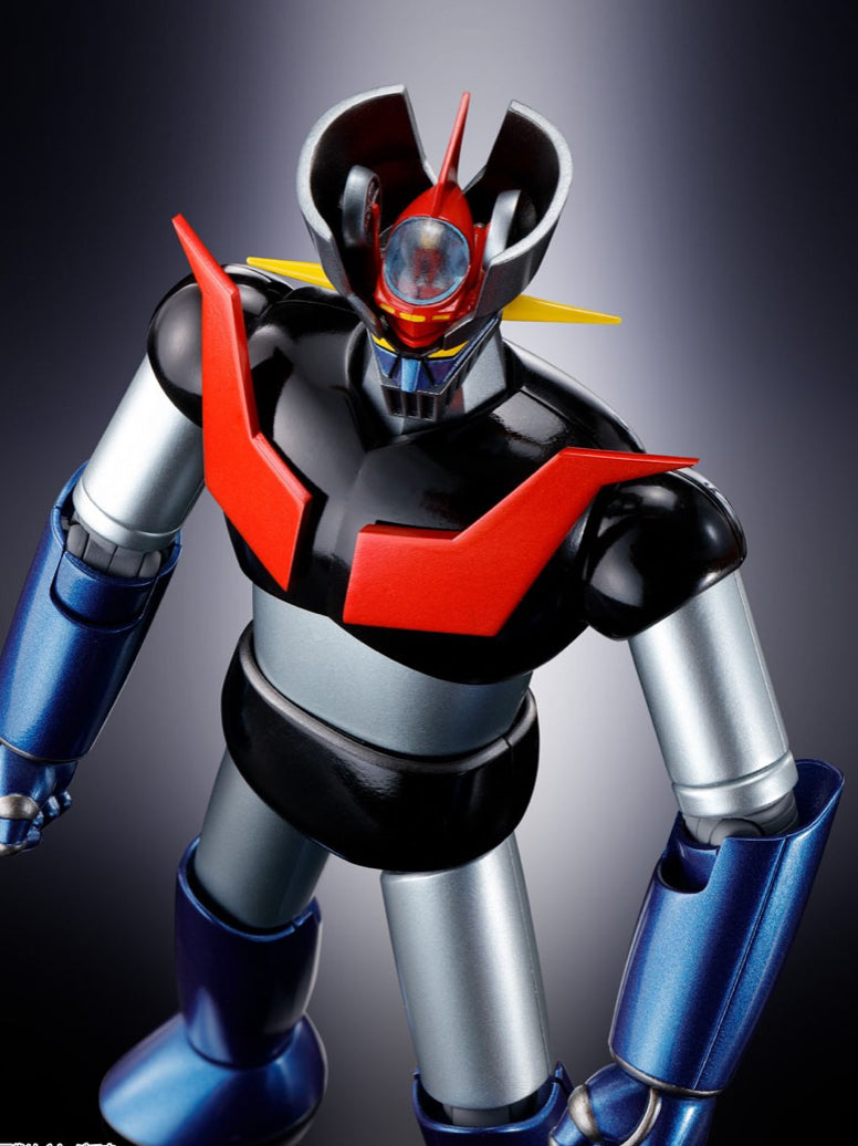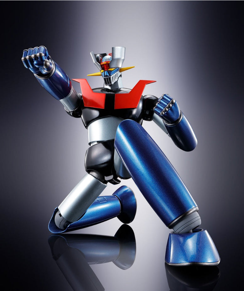 Celebrating the fiftieth anniversary of the debut of Mazinger Z on television comes this totally revised and re-sculpted edition of the Soul of Chogokin Mazinger Z. Elbows open to reveal firing mechanisms, and swappable parts let you re-create "rocket punch" scenes. Re-engineered thigh and knee joints allow for natural posability. Also includes stomach missile and Jet Scrander options.