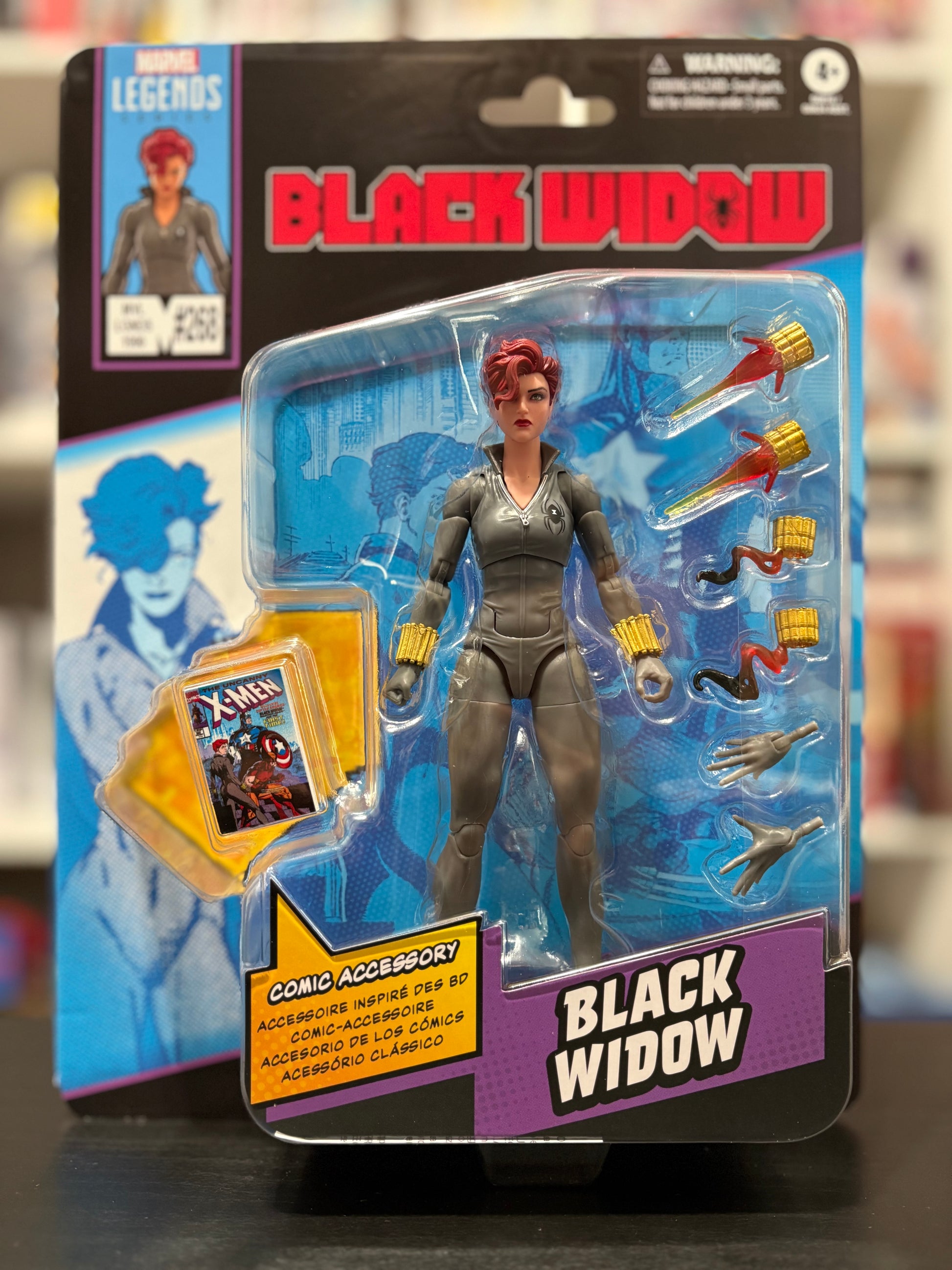Get your hands on the Uncanny X-Men #268 Marvel Legends Black Widow by Hasbro! This collectible figure is inspired by the character's appearance in the iconic 1990 comic and comes with 7 accessories, including a scale plastic comic book cover. With premium design and deco, this 6 inch action figure is a must-have for any Marvel fan's collection!
