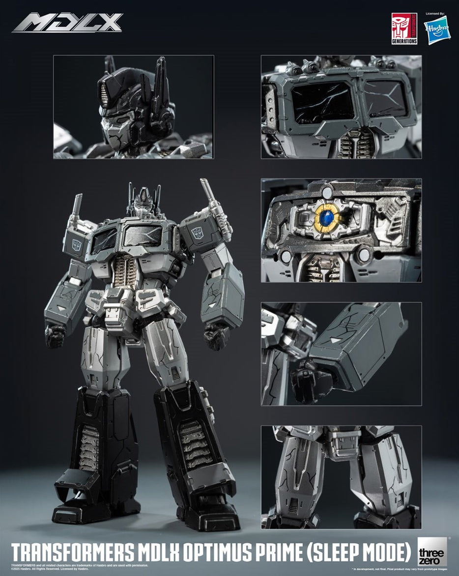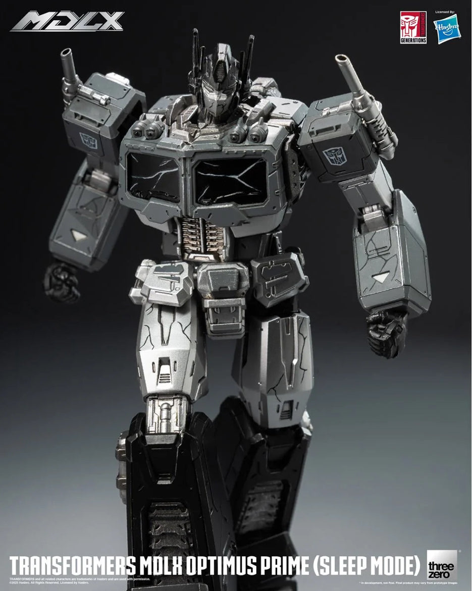 Optimus Prime, the heroic leader of the Autobots, has fallen after being critically injured in battle. Threezero has reimagined this legendary character by presenting the MDLX Optimus Prime Sleep Mode, it features a heavily damaged paint scheme with numerous crack-like effects, capturing its battle-worn appearance. The Transformers MDLX Optimus Prime Sleep Mode Action Figure Exclusive stands approximately 7-inches tall, with approximately 48 points of articulation and a die-cast metal frame. Battle-damaged and weathered paint effects have been added to the battle mask, chest windows, and limbs of the figure. This figure is redesigned by threezero Art Director Kelvin Sau, with its iconic designs remixed to incorporate a hyper-detailed mechanical aesthetic. Meanwhile, it features threezero's unique die-cast zinc alloy and engineer-grade plastic frame system, enhancing the figure's tactile playability and durability. Ages 15 and up.